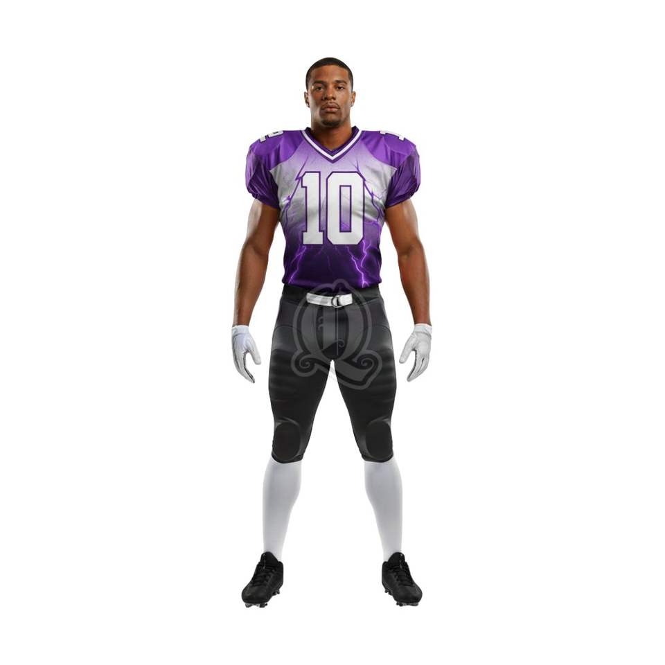 Uniforme de fútbol americano con sublimación de relámpago personalizado, conjunto de Jersey y pantalones, uniformes de tela elástica de 4 vías
