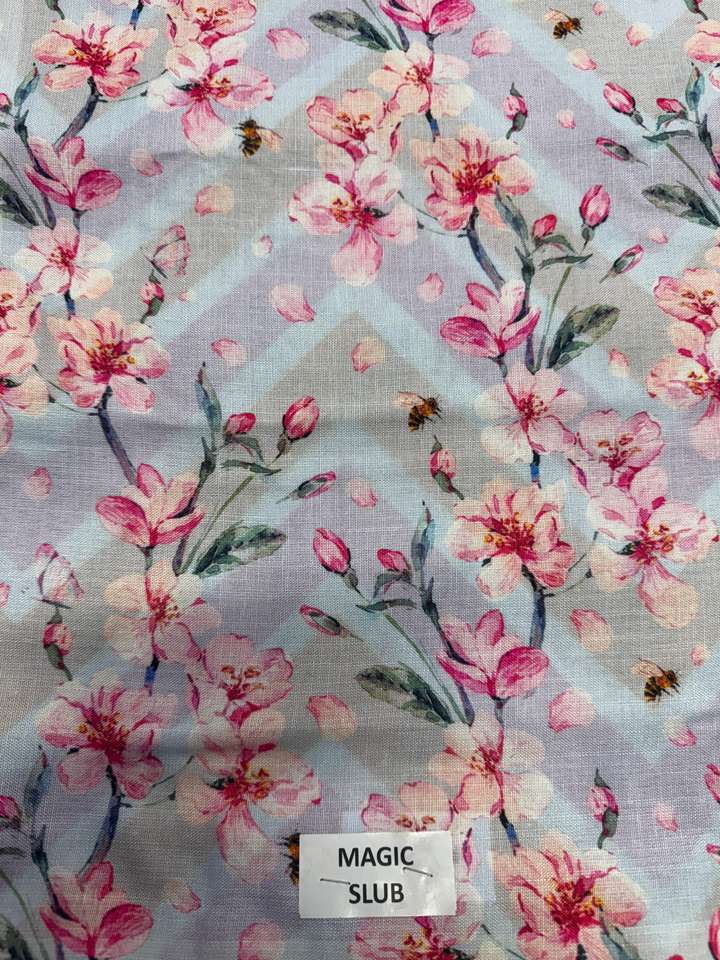 Tela Ligera Personalizada 100% Algodón Magic Slub con Estampado Digital para Confección de Prendas y Vestidos
