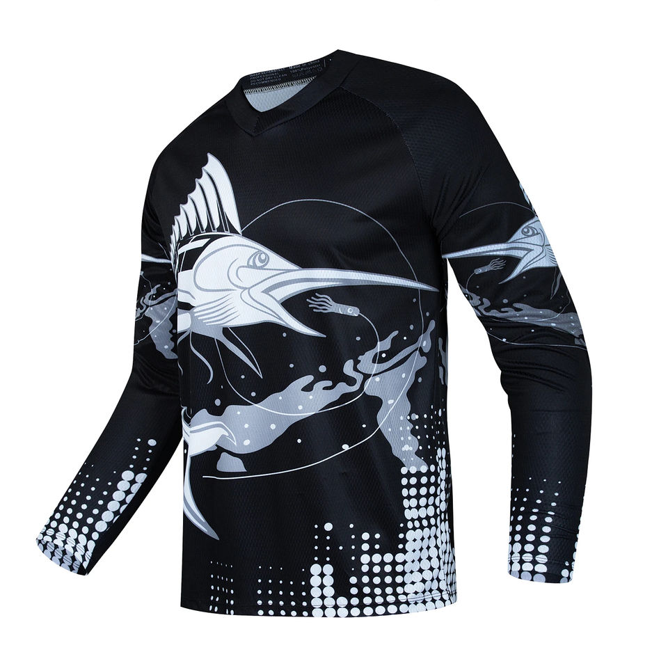 Camisa de pesca de manga larga transpirable ligera personalizada UPF 50 + poliéster reciclado sublimación impresa ropa de pesca