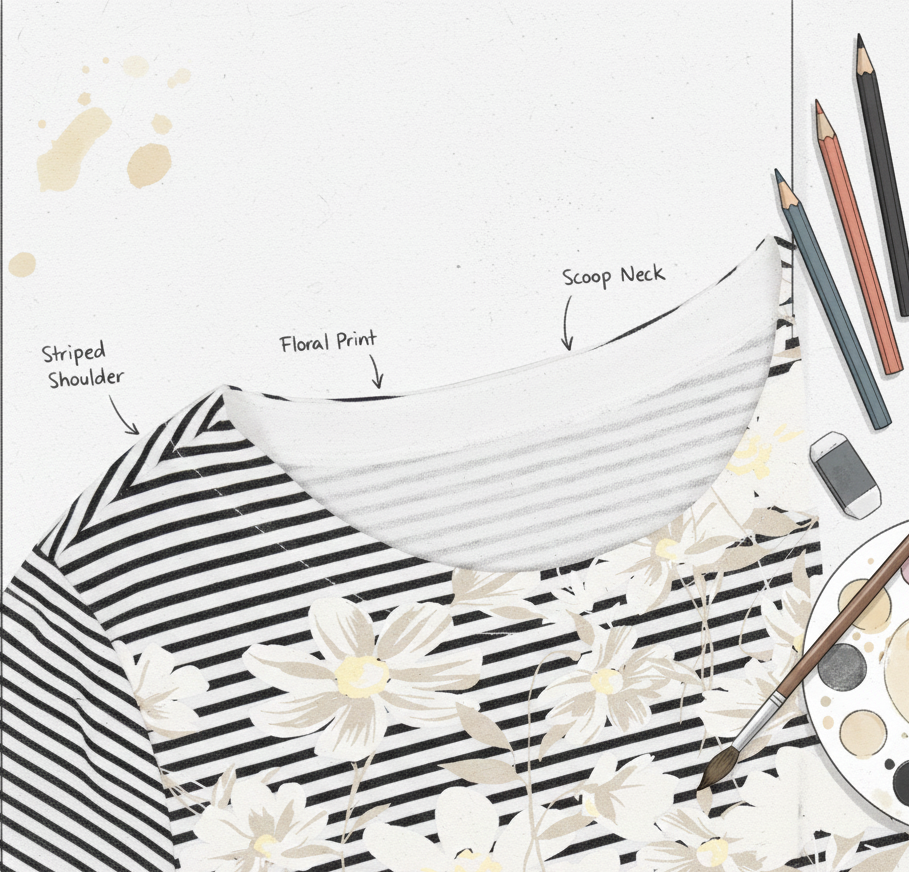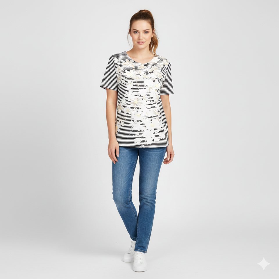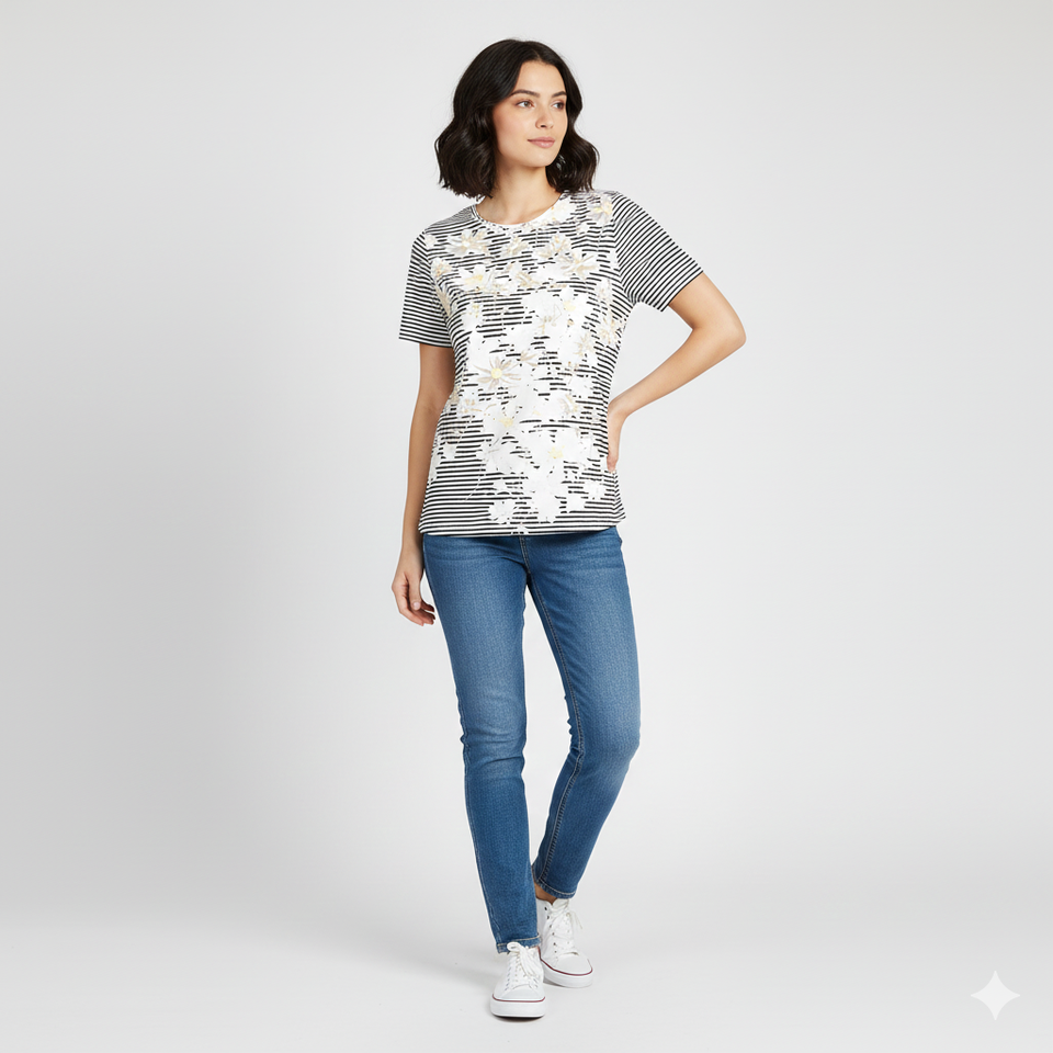 Custom Women's T-Shirt Floral & Stripe Sublimation Top