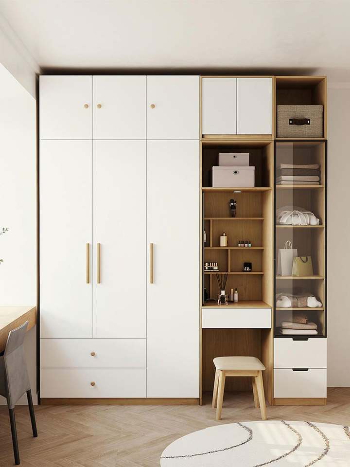 Muebles de dormitorio de lujo ligeros y personalizados, armario de esquina, guardarropa, almacenamiento de madera, diseño moderno, vestidor