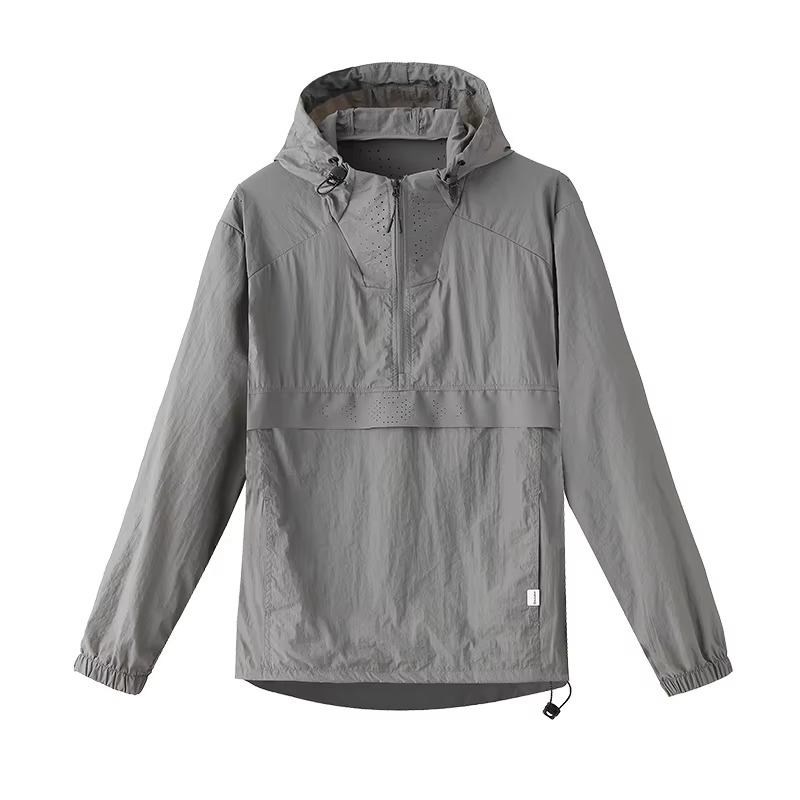 Chaqueta Anorak cortavientos con capucha y cremallera 1/4 de concha de poliéster ligera personalizada para actuación al aire libre de temporada de primavera