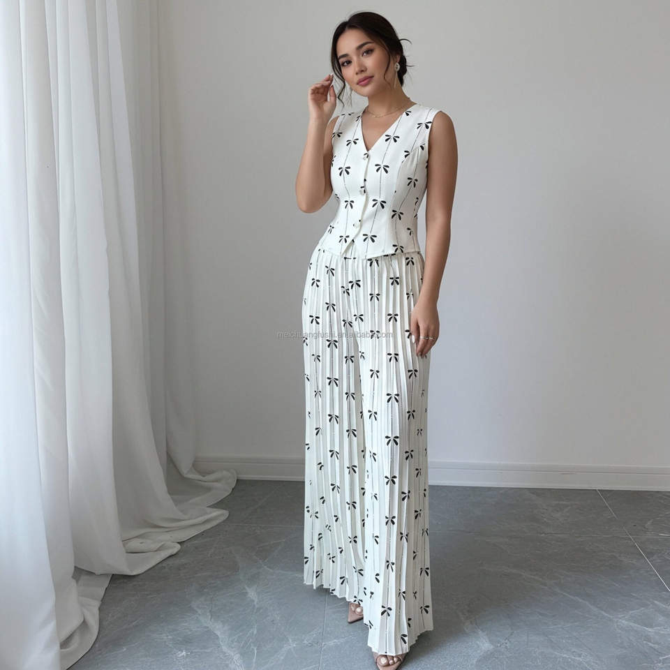 Conjunto de Traje de Dos Piezas Ligero Personalizado para Mujer, Pantalón con Estampado de Lazo Negro, Traje para Dama