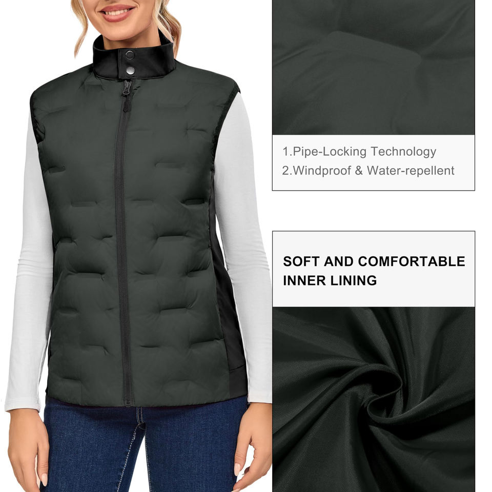 Chaleco acolchado sin mangas, ligero, impermeable, transpirable, cortavientos, plegable, de talla grande, para mujer, de poliéster, para invierno.