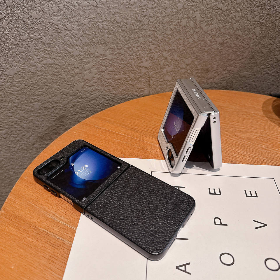 Funda de teléfono con textura Litchi personalizada para Samsung Galaxy Z Flip 7 6 5 4 3 OPP Find N3, funda de teléfono plegable hecha en PC