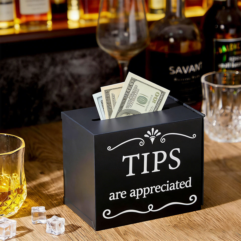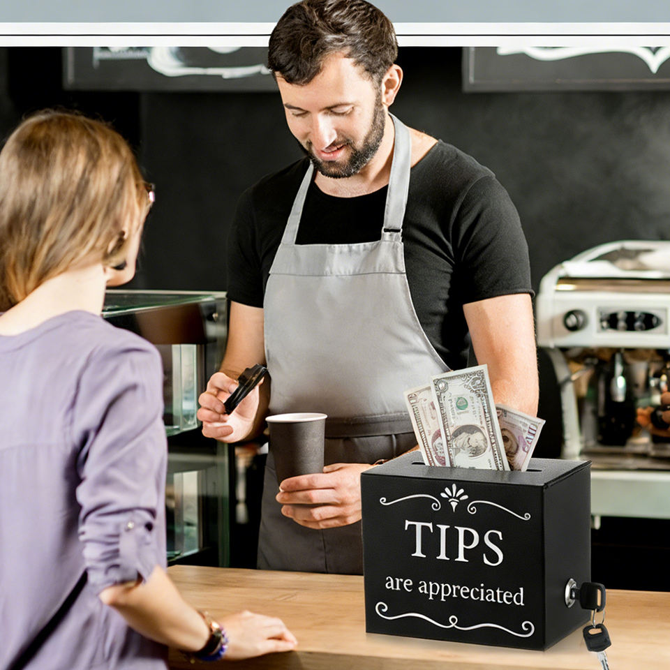 Caja de donaciones, caja de votación, caja de rifa, tarro de propinas