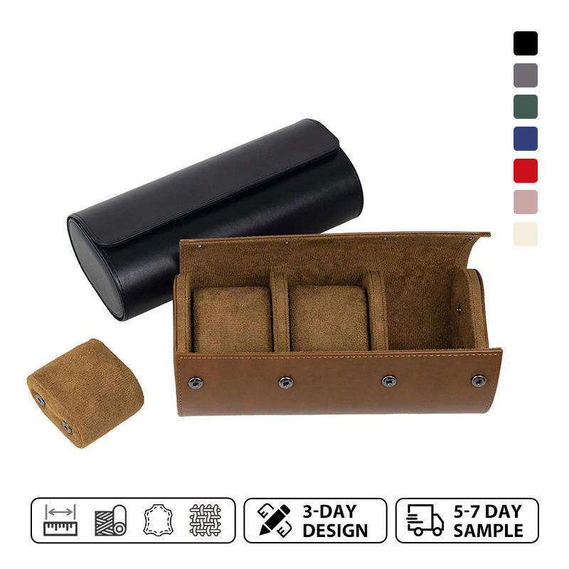 Estuche de Viaje para Relojes de Cuero PU con Logotipo Personalizado, 1, 2 o 3 Ranuras, Estuche Enrollable Portátil para Relojes