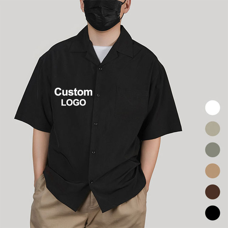 Logotipo personalizado 100% algodón hecho cuello cubano camisas hombres verano desgaste B2B listo moda elegante algodón cubano camisas