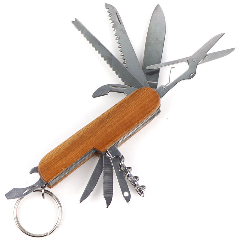 Logotipo personalizado 11 en 1 Cuchillo de bolsillo múltiple Cuchillo de recuerdo de metal Llavero