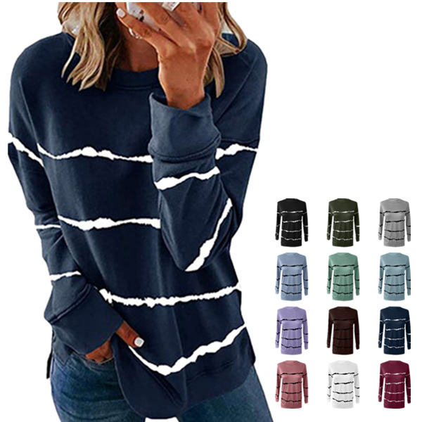 Logotipo personalizado 15 colores 230G poliéster otoño mujer estampado francés Terry rayas camisa de manga larga WomenT-shirt para hombres