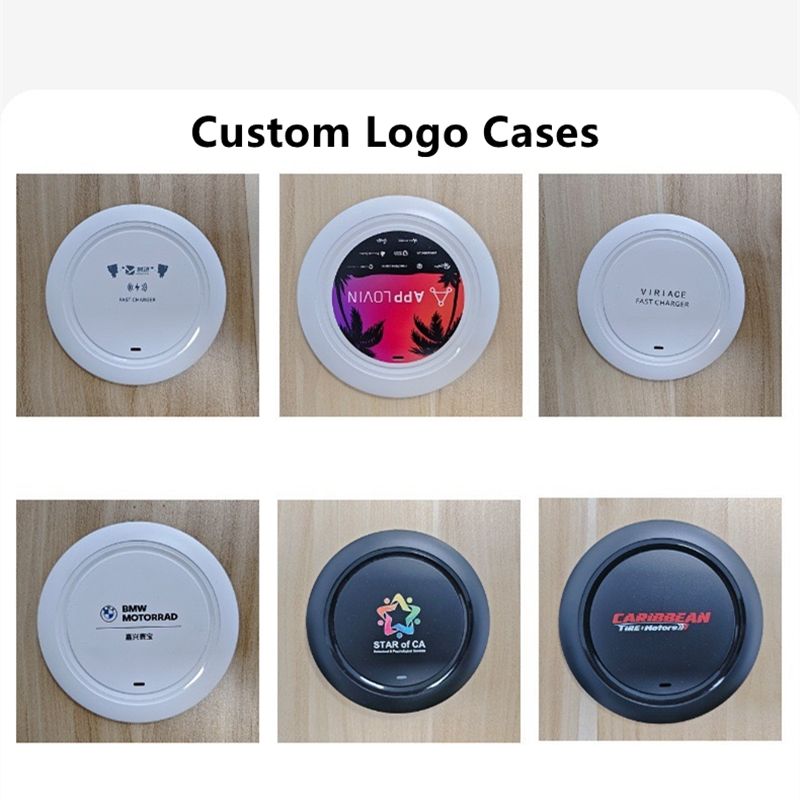 Almohadilla de cargador inalámbrico de 15W con logotipo personalizado, carga inalámbrica rápida para iPhone15, almohadilla de carga inalámbrica con luz LED de espejo redondo Samsung