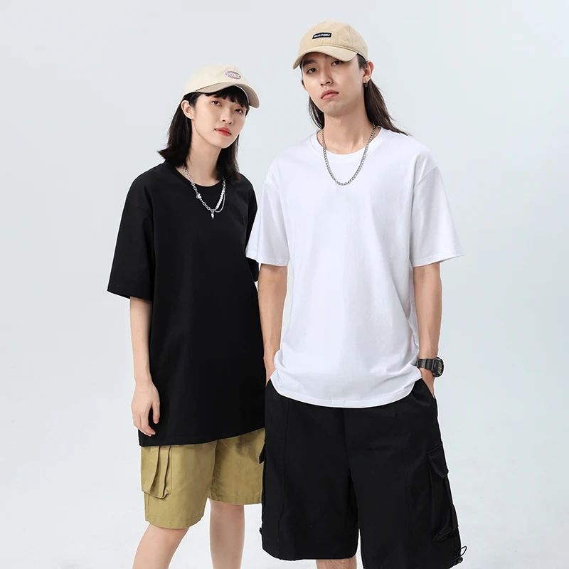 Logotipo personalizado 190 GSM 100% algodón camisetas de gran tamaño para hombres impresión lisa en blanco hombro caído cuello redondo Camiseta para hombres