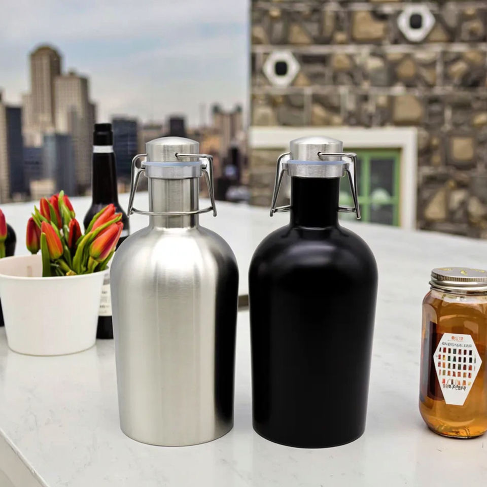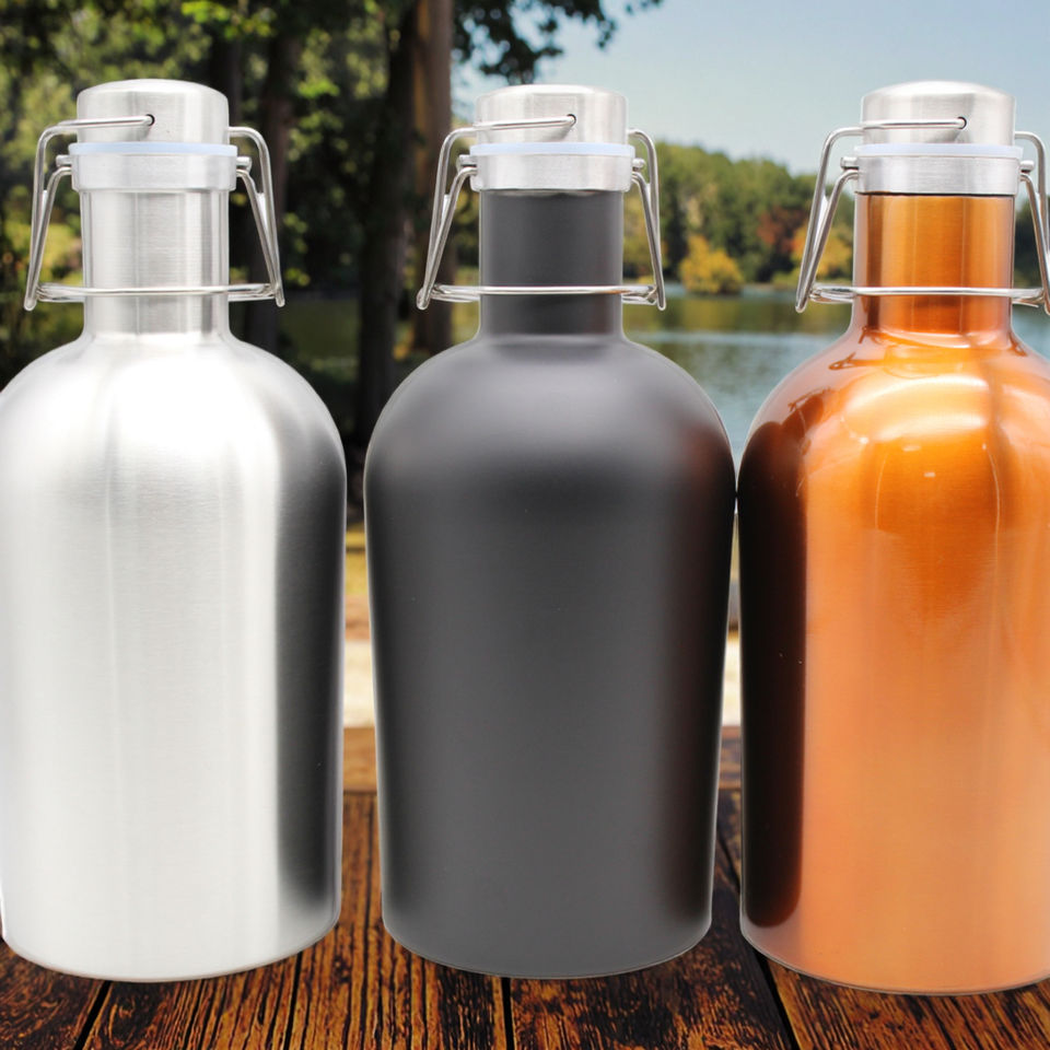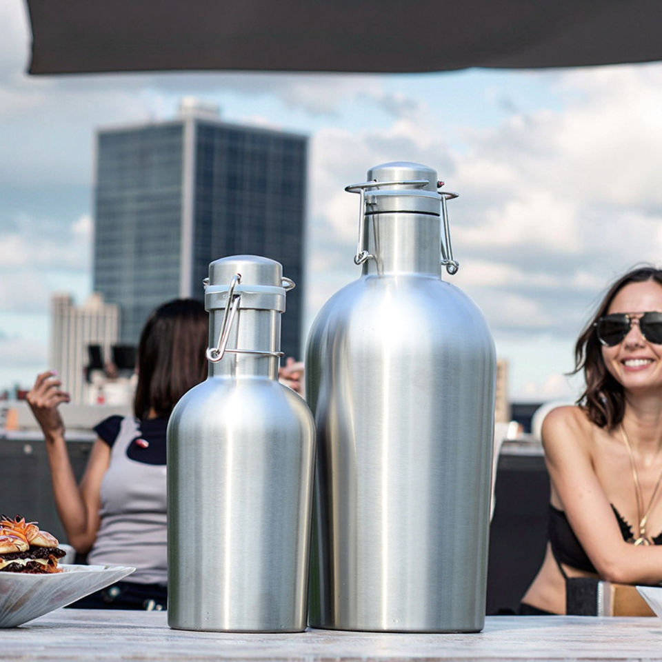 Frasco de vacío de cerveza de acero inoxidable de 1L/2L con logotipo personalizado para fiestas botella de acero inoxidable para llevar térmica fría