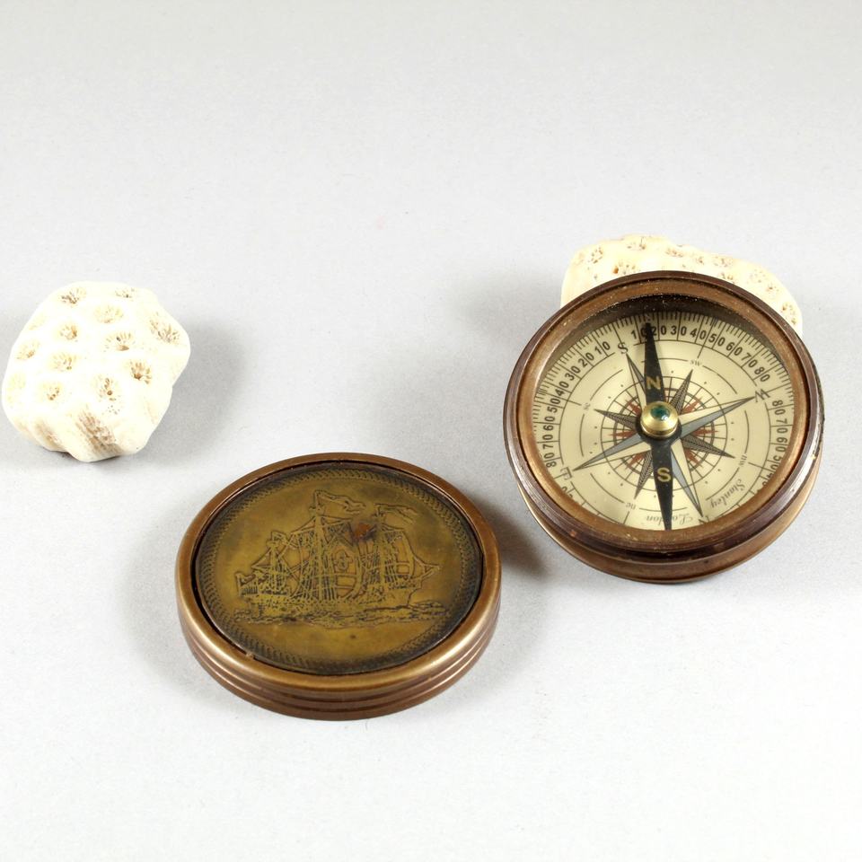 Logotipo personalizado 2 \ "Brújula con acabado de latón antiguo Diferentes tiempos Madera Metal Aleación Funda de cuero Herramienta de navegación de barco personalizable