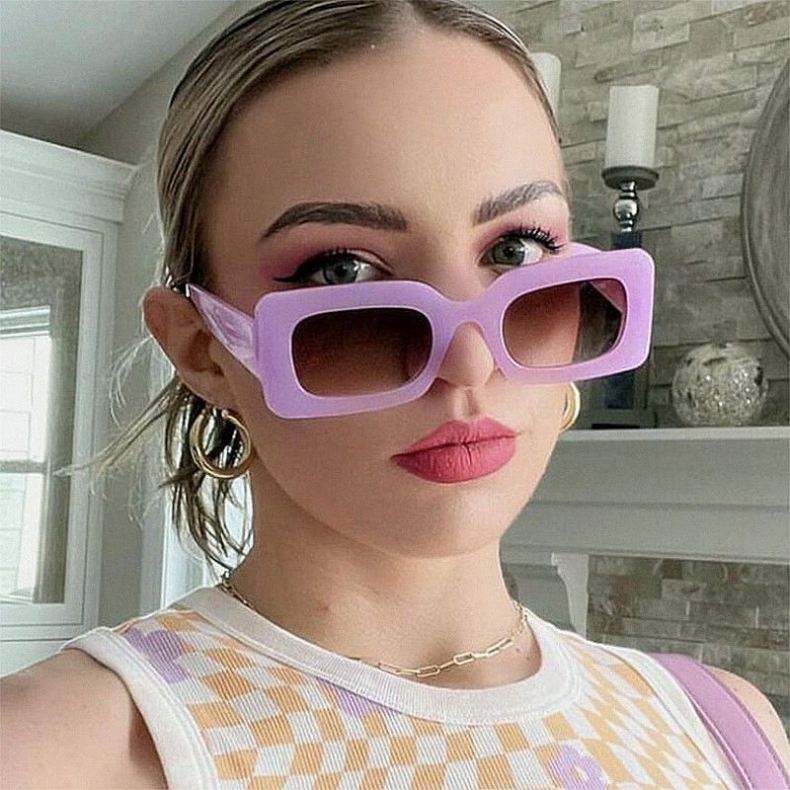 Gafas de Sol Rectangulares Pequeñas Vintage 2022 con Logotipo Personalizado para Mujer, Gafas de Sol Cuadradas en Colores Pastel
