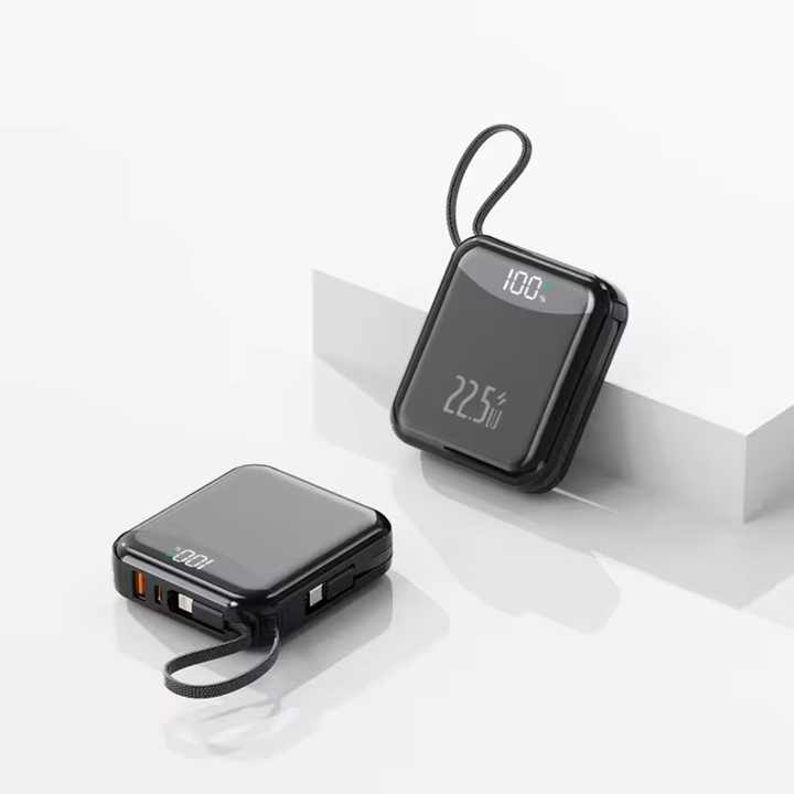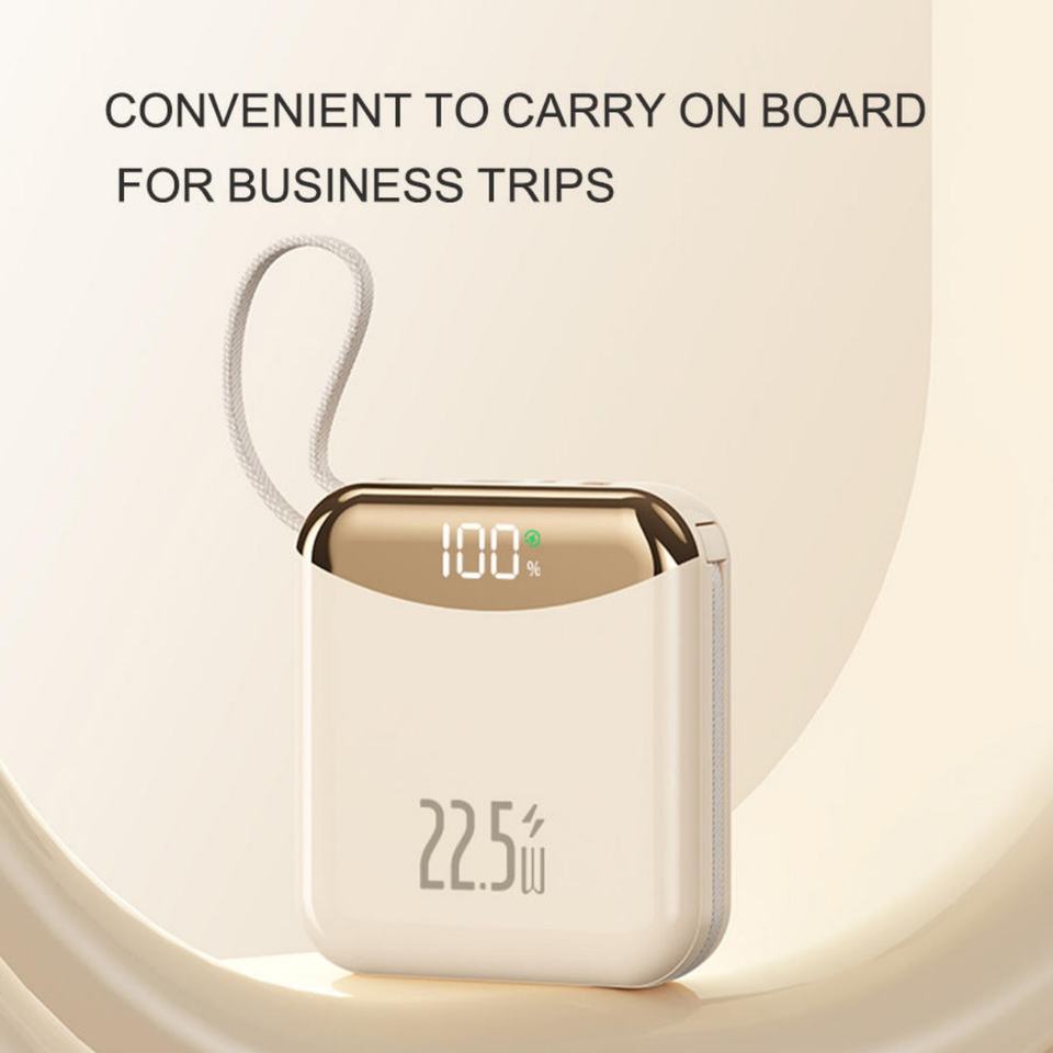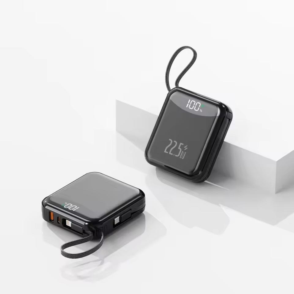 Cargador Portátil Personalizado con Logotipo, Carga Rápida de 22.5W, Pantalla LED, Alta Capacidad, Mini Ultra Delgado de 10000mah, con Cable Integrado para Teléfono