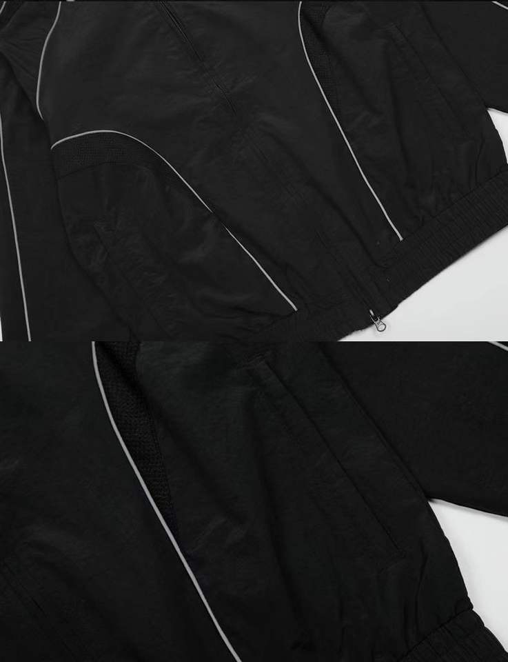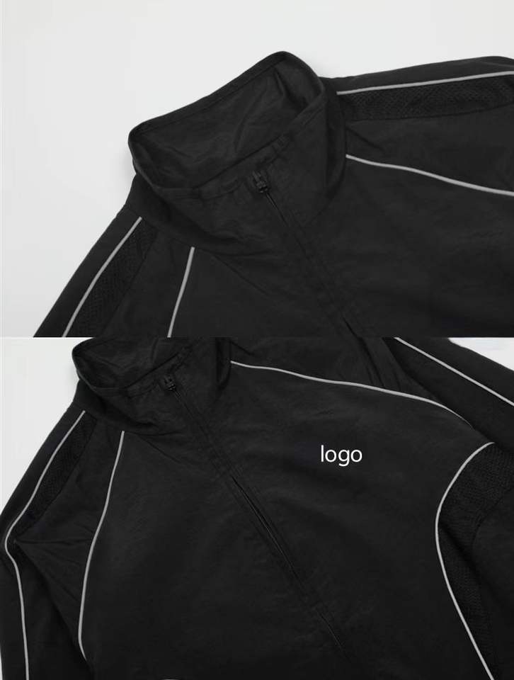 Chándal de nailon con logotipo personalizado y rayas reflectantes de 2M para hombre, cortavientos, conjuntos de nailon para hombre con ribetes.