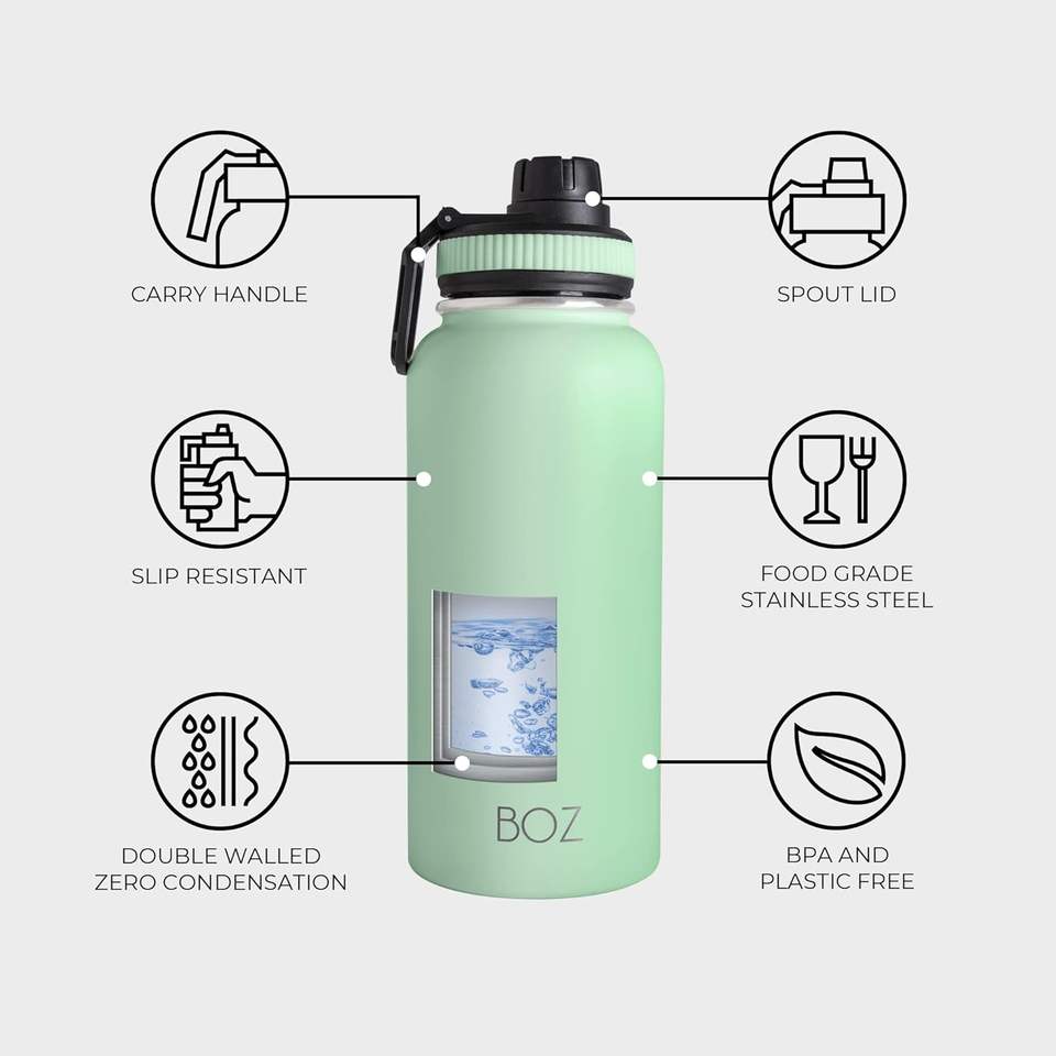 Botella térmica de doble pared de 32 oz con logotipo personalizado, botella de agua de viaje portátil aislada de acero inoxidable de 1L