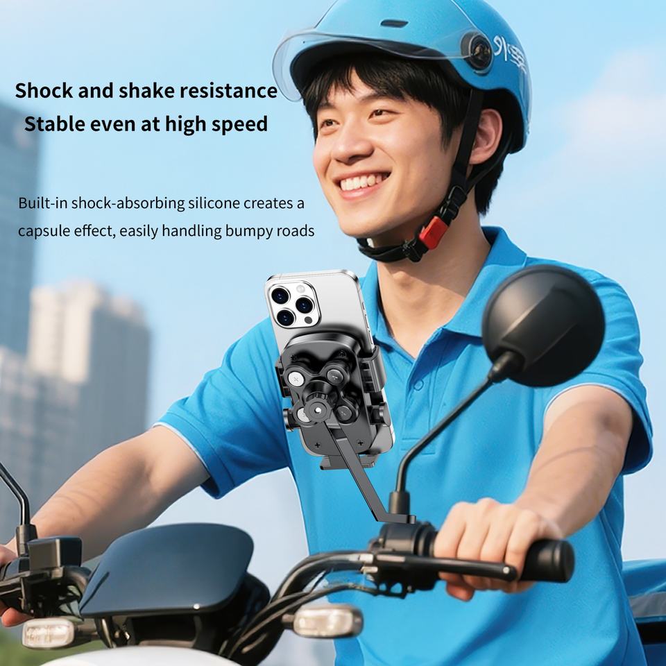 Palabras clave:Soporte para teléfono móvil de motocicleta con absorción de impactos para motocicleta y bicicleta