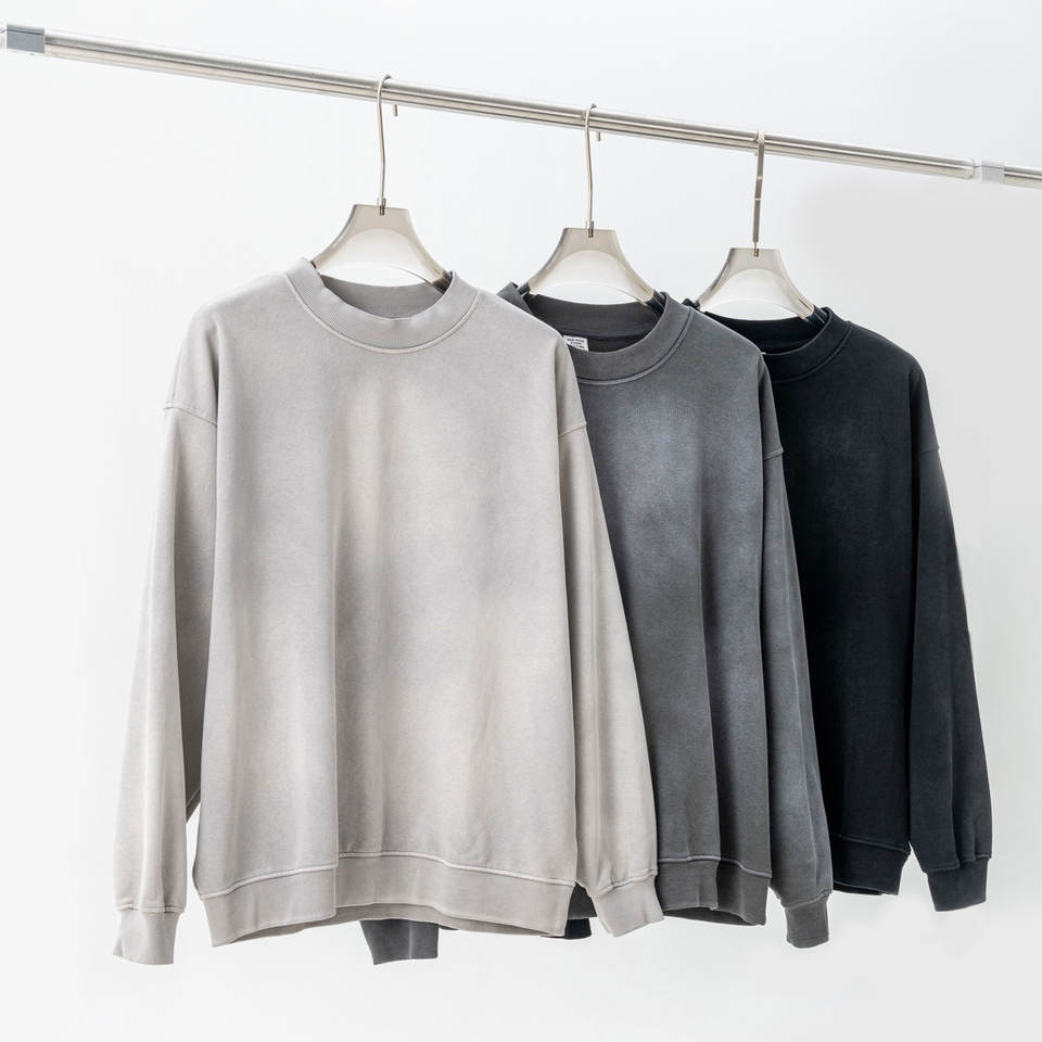 Sudadera lavada con Mono para hombre con logotipo personalizado de 370G, ropa de calle Retro de felpa francesa con cuello redondo, sudadera holgada con hombros caídos para hombre