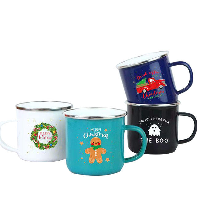 Logotipo personalizado 4/8/12oz Classic Edge Curl Metal Campfire Camping Esmalte Taza de café con borde de acero inoxidable