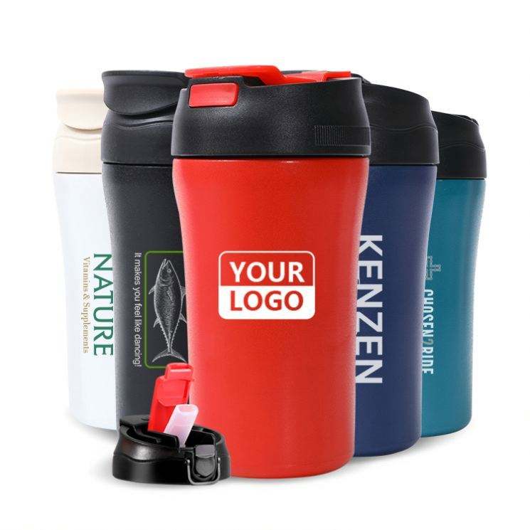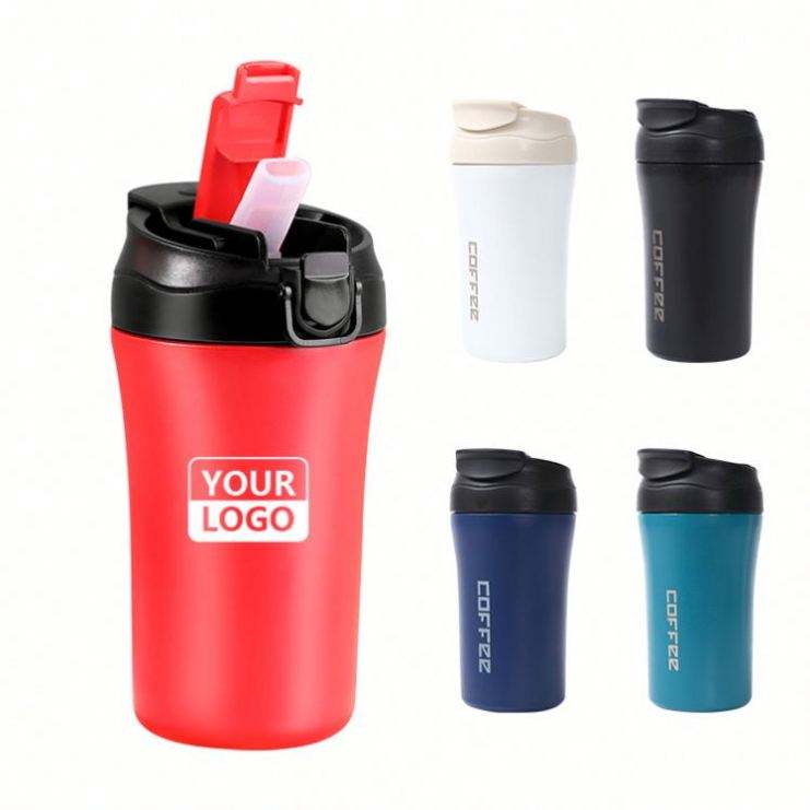 Taza de Café de Acero Inoxidable de 400 ml con Logotipo Personalizado, Taza de Viaje de Doble Pared, Taza Térmica de Oficina con Tapa y Pajita