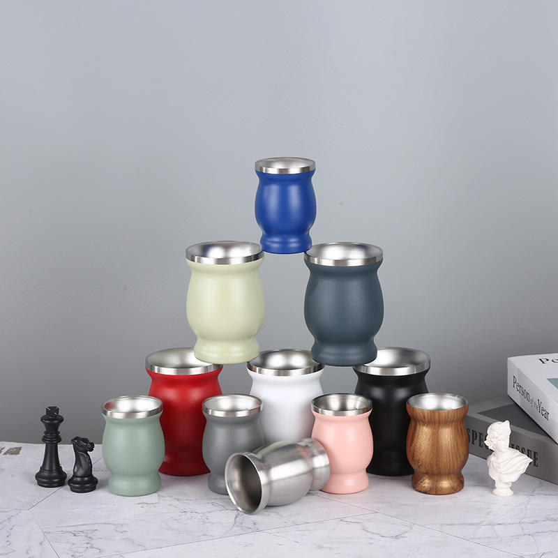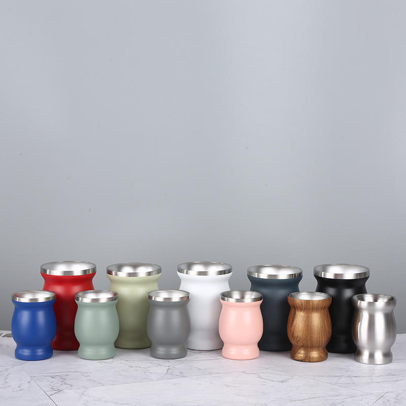 Taza mate de acero inoxidable mate de doble pared portátil de 4oz con logotipo personalizado con Bombilla para té de Yerba