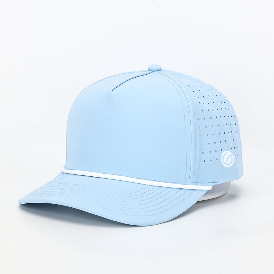 Gorra de béisbol con cuerda de 5 paneles con logotipo personalizado, gorra deportiva perforada con corte láser azul para correr, gorra de Golf con cuerda impermeable de poliéster
