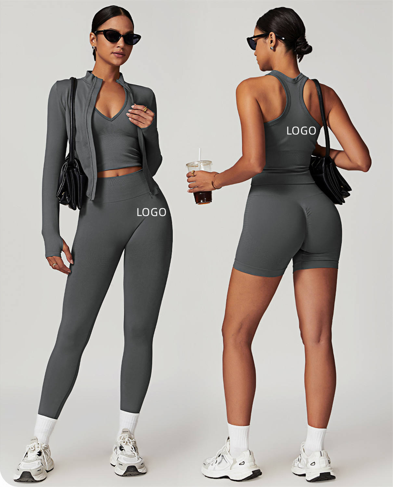 Conjuntos de Yoga de 5 piezas con logotipo personalizado, venta al por mayor de ropa deportiva para niñas, conjuntos de yoga, conjuntos de fitness para Gimnasio Deportivo para mujeres