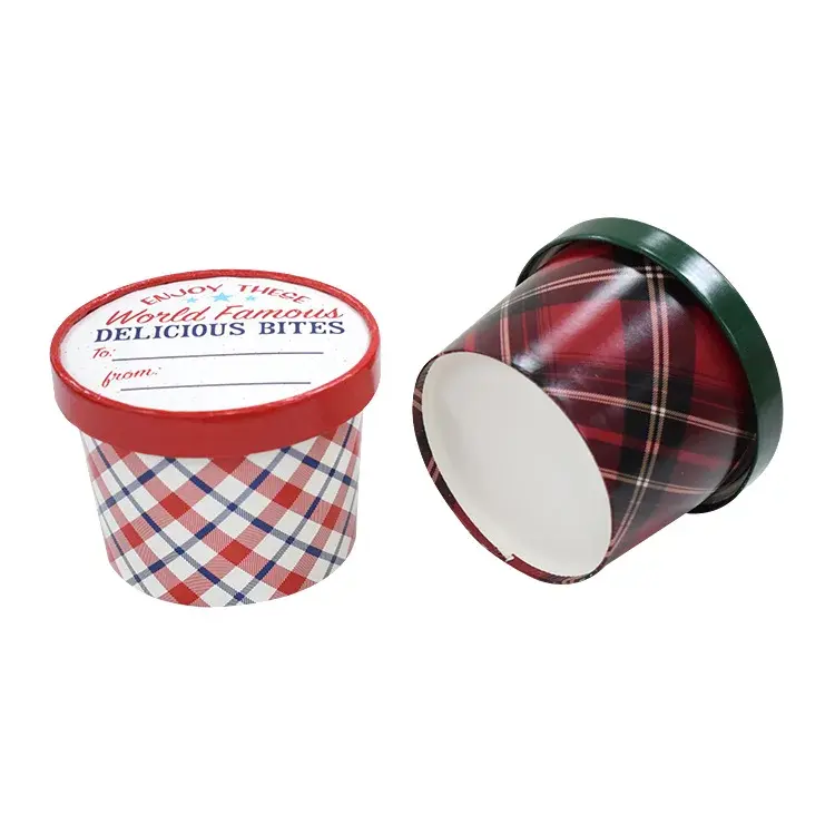 Logotipo personalizado 6oz doble pared de helado taza de papel/tapas de cuencos Mini contenedor de postre conjunto de estampado de helado de impresión