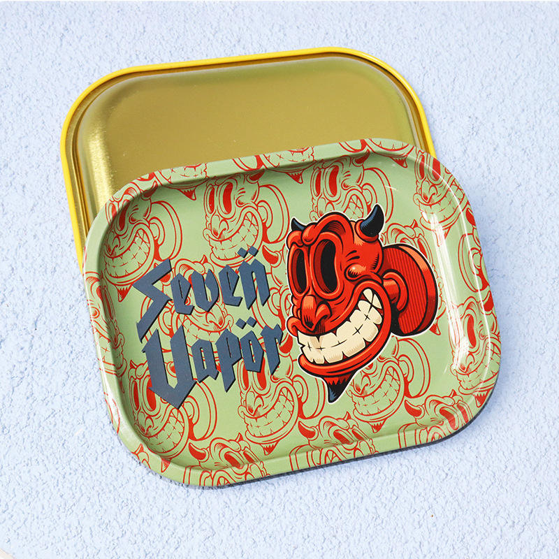 Bandeja rodante de metal de 7*5.5 pulgadas con logo personalizado para tiendas de vapeo, dispensarios y cultivadores