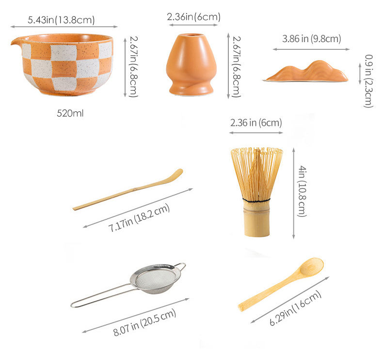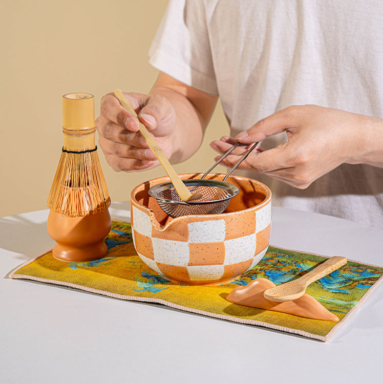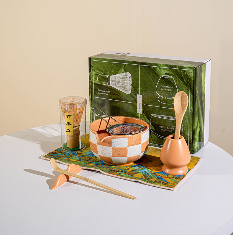 Logotipo personalizado 8PCS Ins Style Sub Matcha Juego de té Cepillo de té de bambú Cuenco de cerámica Composición Tradicional Juego de herramientas de té Matcha hecho a mano