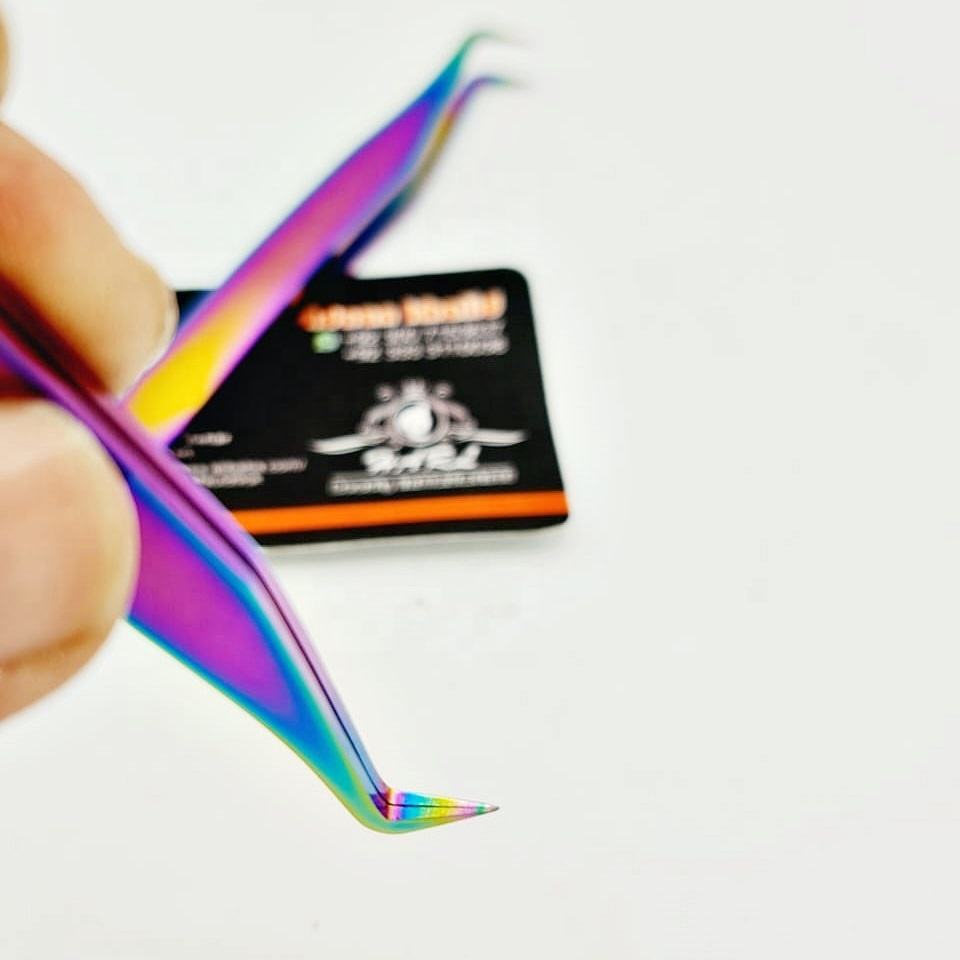 Pinzas de extensión de pestañas de acero inoxidable multiplasma de 90 grados con logotipo personalizado, puntas de fibra, herramientas de belleza para extensiones de pestañas