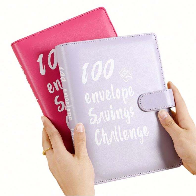 Carpeta A5 Personalizada con Logotipo, Sobres para Efectivo, Impresión Serigráfica en Plástico, Planificador de Ahorro de Dinero Promocional, 100 Días, Hojas Sueltas