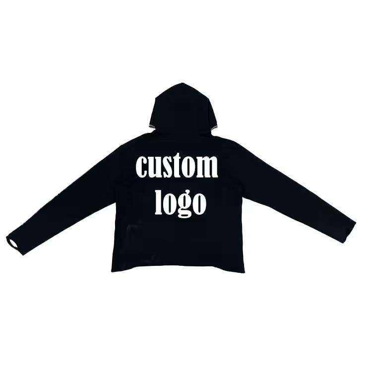 Sudadera con Capucha Corta y Holgada con Logotipo Personalizado, Lavado Ácido, para Hombre, con Bordado Desgastado por el Sol y Doble Capucha