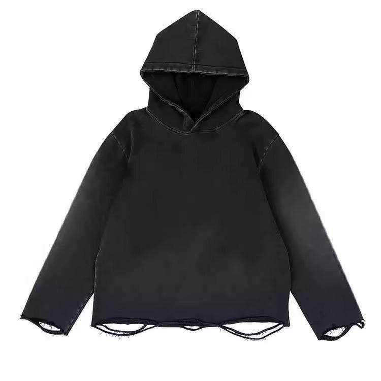 Sudadera con Capucha Corta y Holgada con Logotipo Personalizado, Lavado Ácido, para Hombre, con Bordado Desgastado por el Sol y Doble Capucha