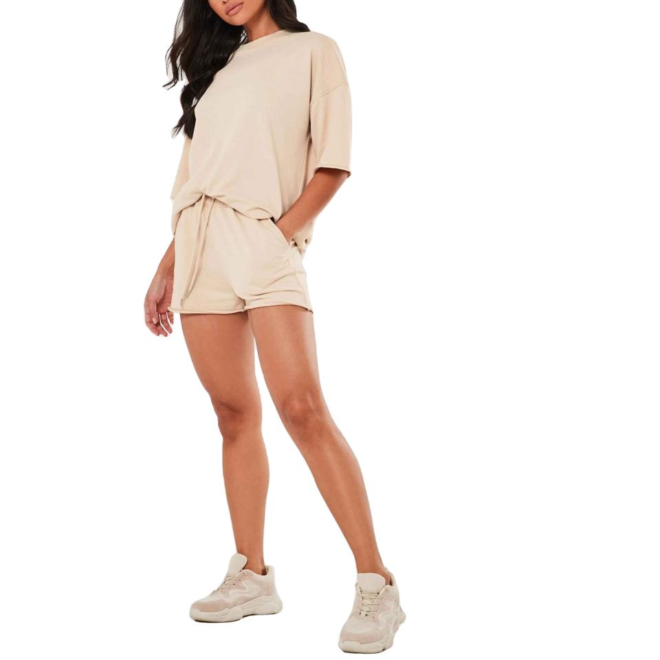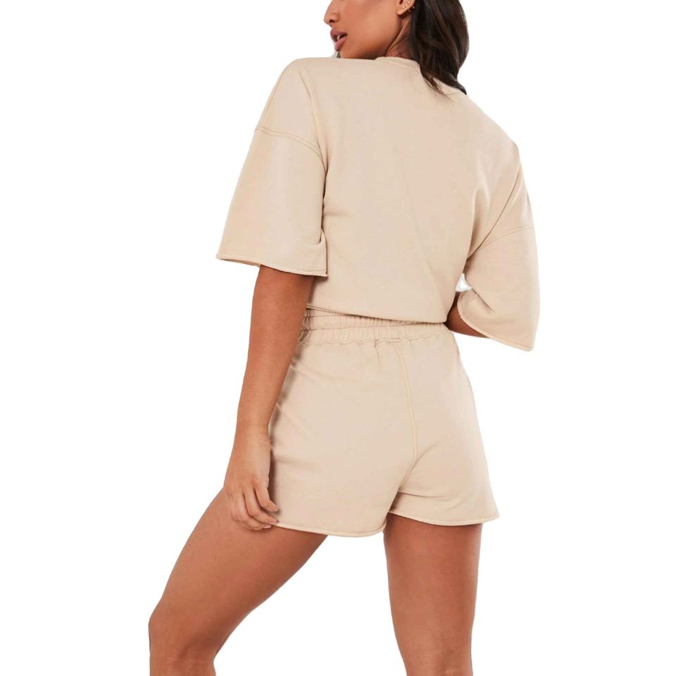 Conjunto de Verano para Mujer: Top Corto sin Mangas con Logo Personalizado, Efecto Desgastado y Acabado Ácido, y Shorts con Dobladillo sin Rematar a Juego