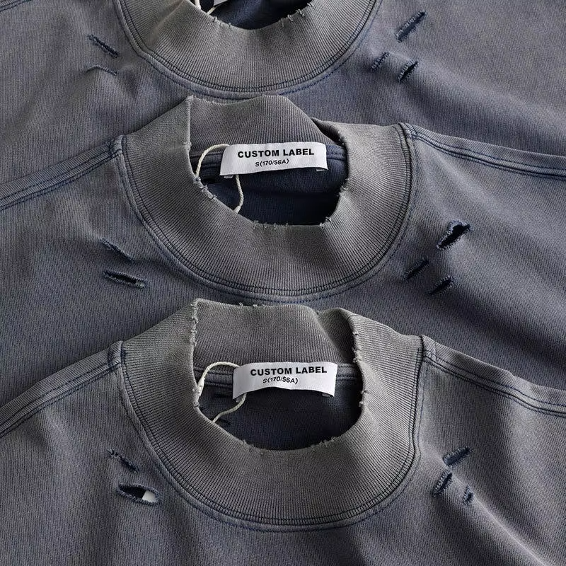 Camiseta Personalizada con Logotipo Lavada al Ácido para Hombre, Estilo Desgastado, Gruesa, Lisa, Extra Grande, 100% Algodón Jersey para Camiseta de Hombre