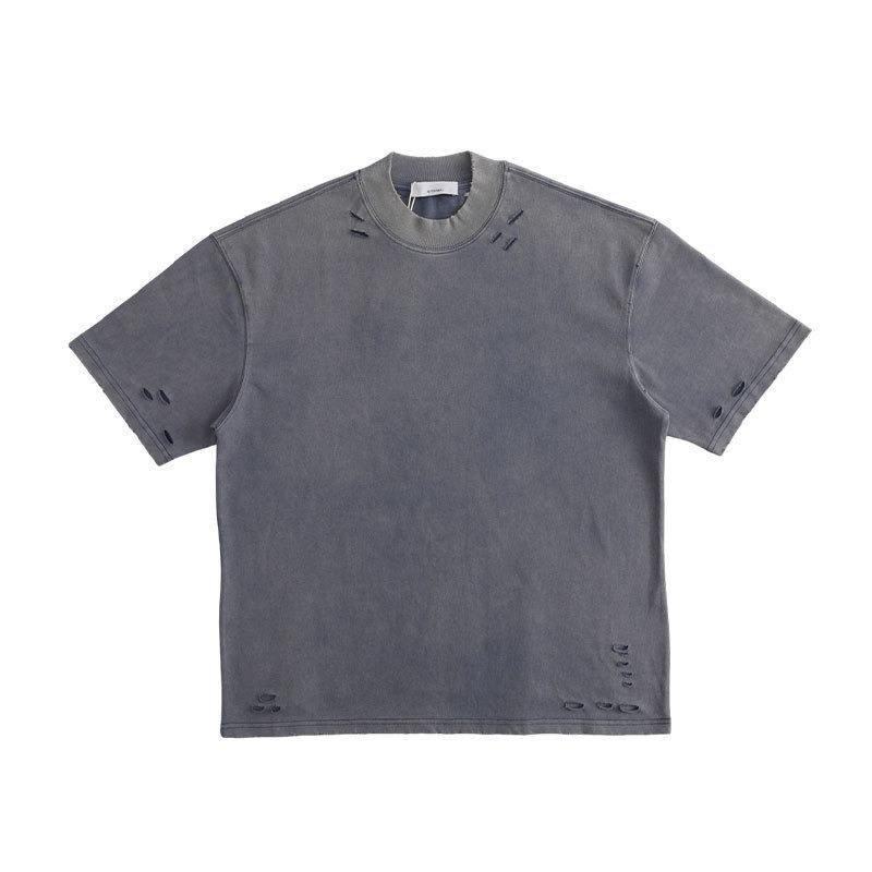 Camiseta con logo personalizado, lavada al ácido, para hombre, estilo desgastado, de tela gruesa, extragrande, de algodón jersey, para hombre, AI-TS-25