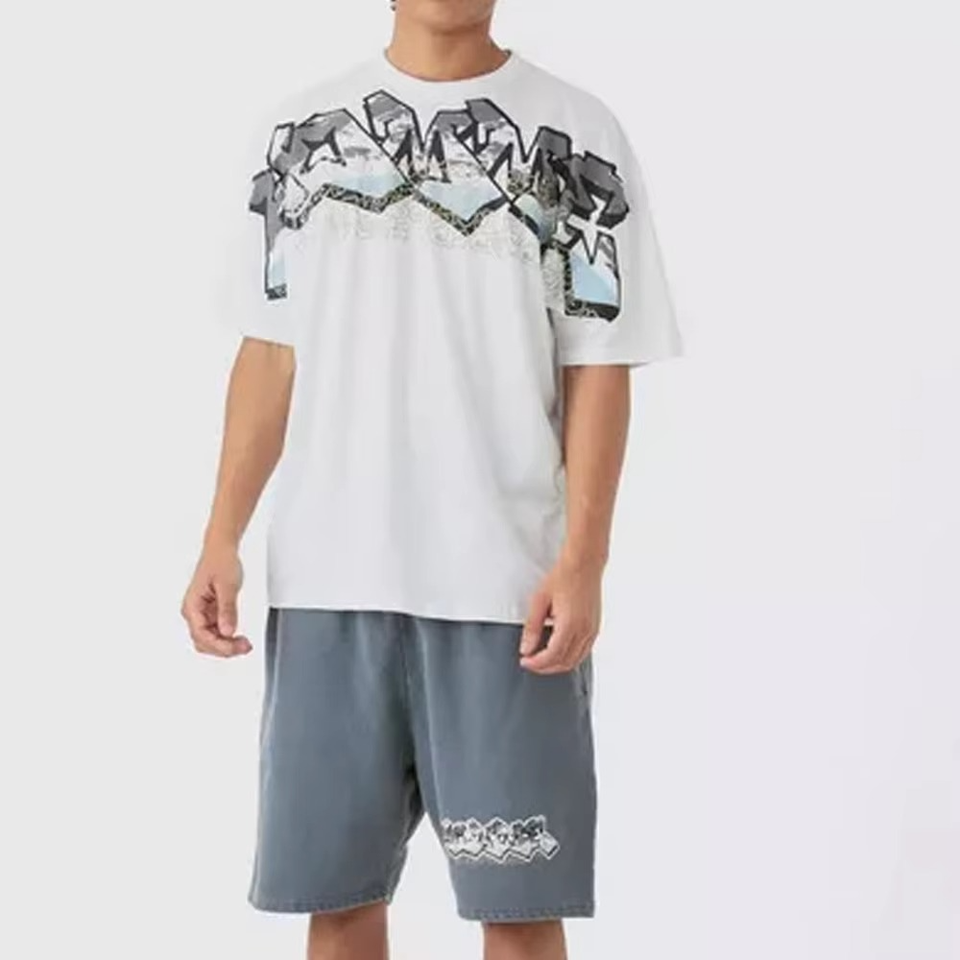 Conjunto de camiseta y pantalones cortos con logo personalizado, lavado ácido, para hombre, ropa de calle de verano, conjunto deportivo informal de 2 piezas, talla XL.