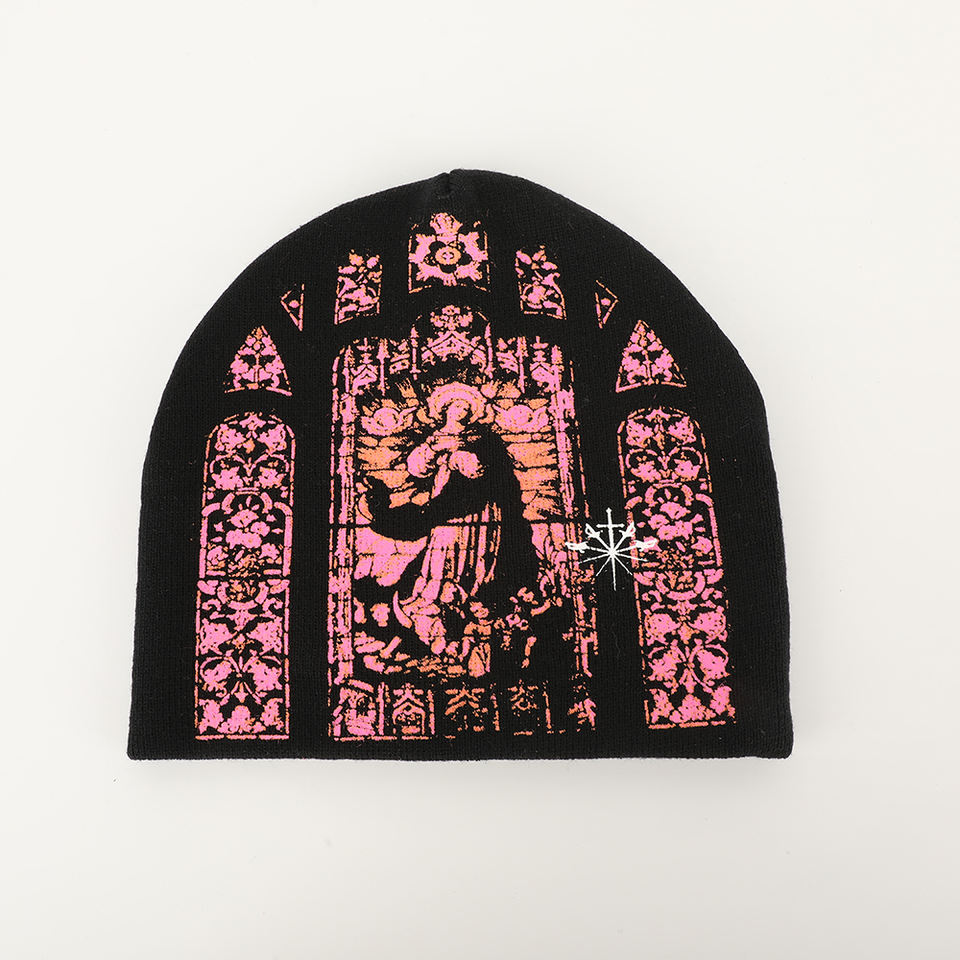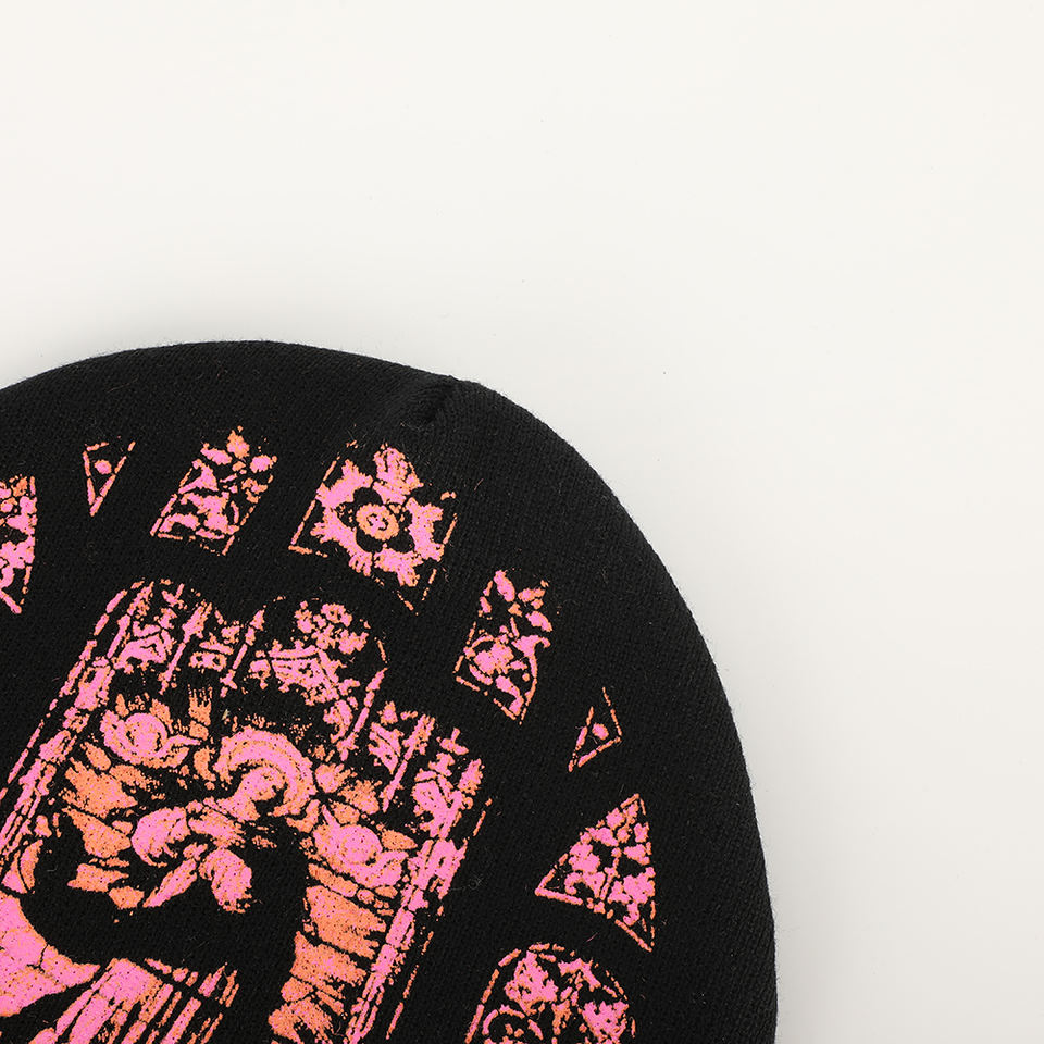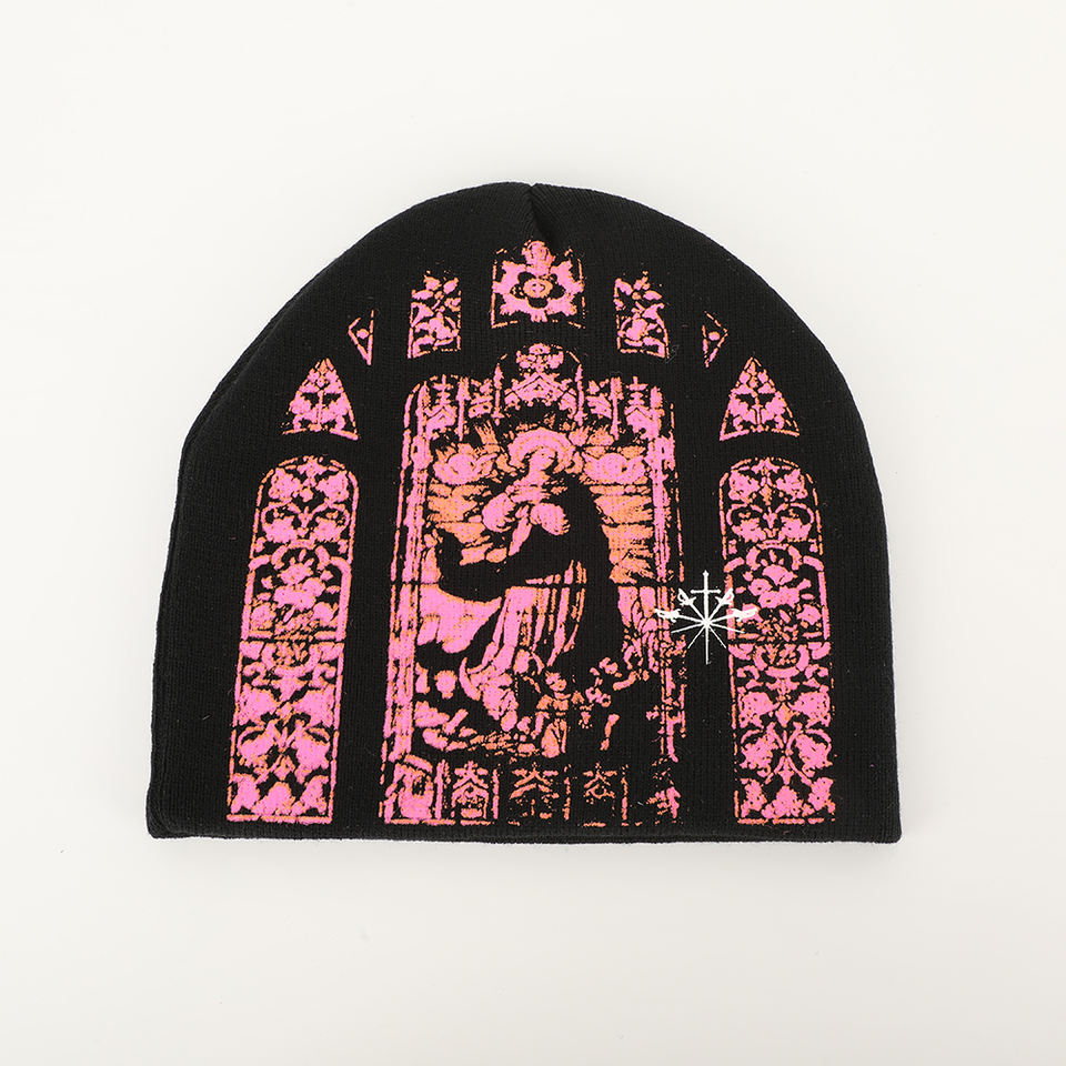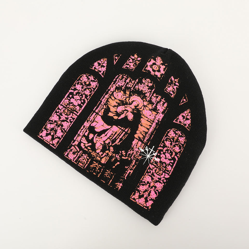 Logotipo personalizado acrílico Jacquard patrón Hip-pop estilo callejero invierno Skully Y2K Beanie Hat sin puños de punto exterior con patrón de cabeza