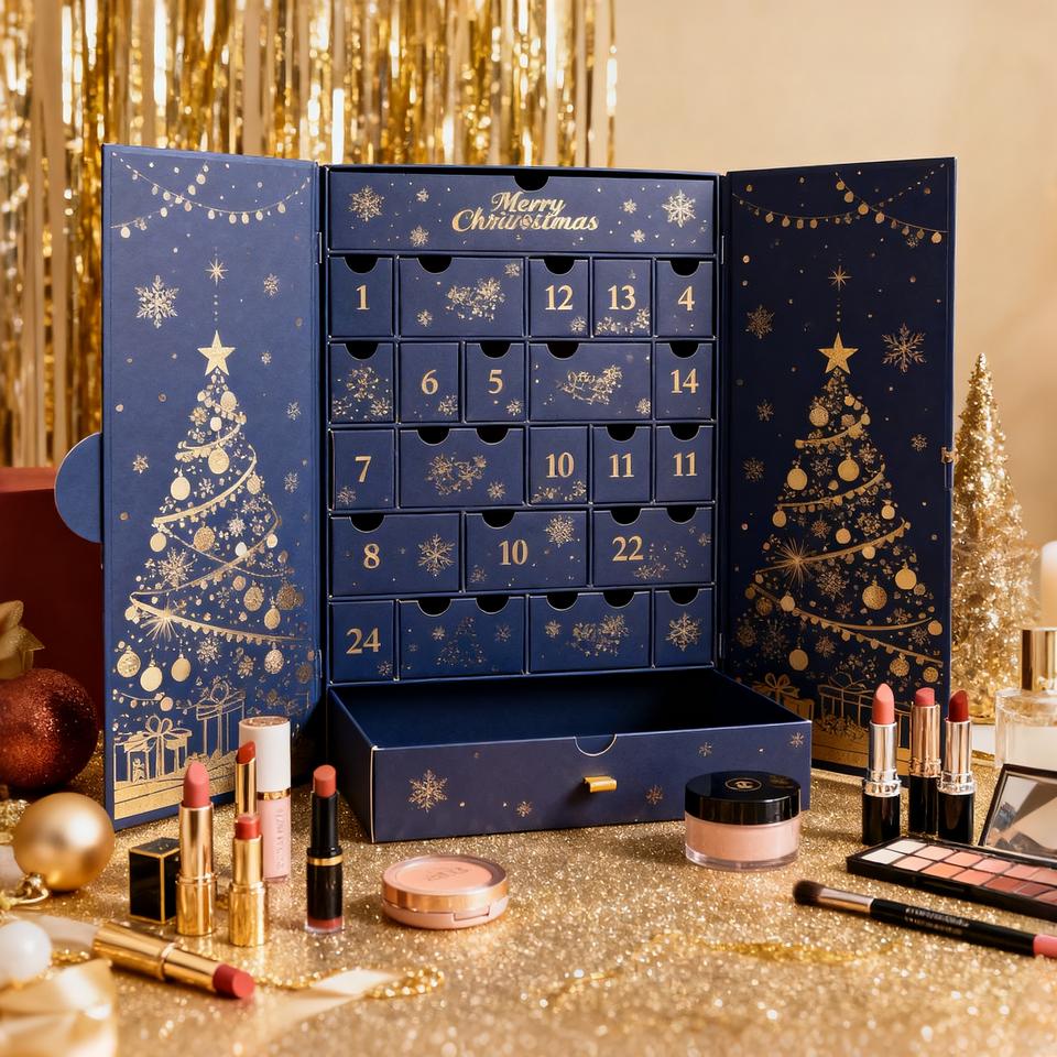 Caja de calendario de Adviento con logotipo personalizado Caja de regalo de calendarios de Adviento de comida de chocolate de 24 días Embalaje