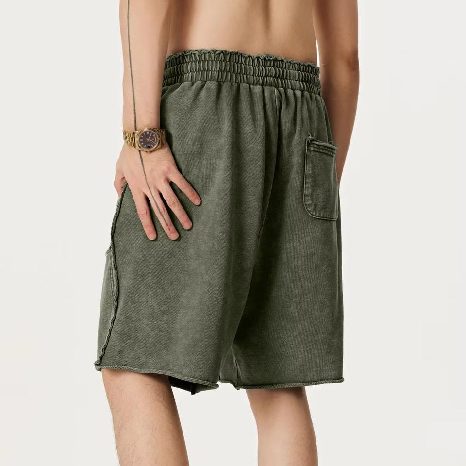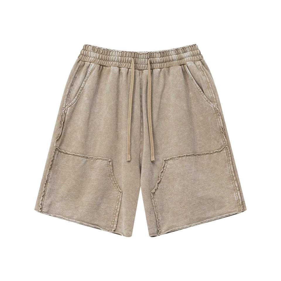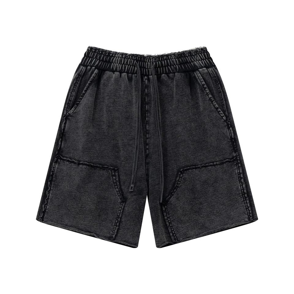 Pantalones Cortos de Felpa Francesa con Logotipo Personalizado, Lavado Ácido, 400GSM, Estilo Vintage, con Bolsillo Utilitario Grande en 3D