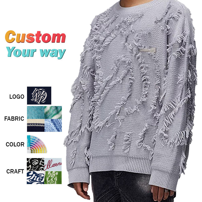 Suéter de cuello redondo Jacquard con flecos de otoño e invierno americano con logotipo personalizado suéter de punto suelto de estilo perezoso para hombres