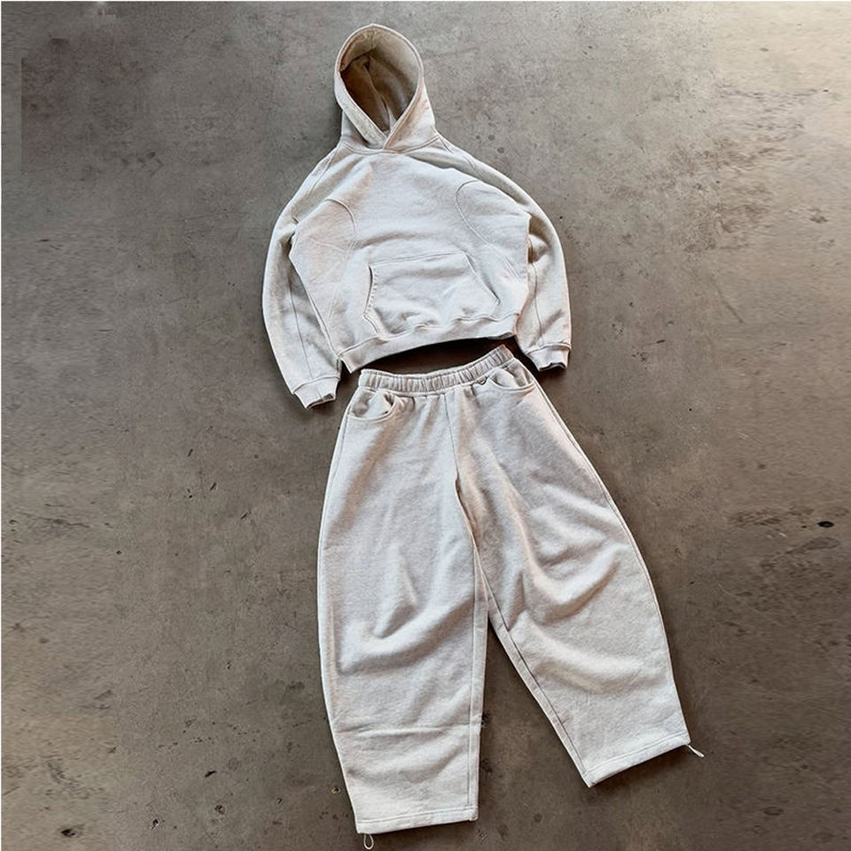Chándal holgado en blanco de dos piezas para invierno, conjunto informal sencillo con capucha y logotipo y diseño personalizado para hombre