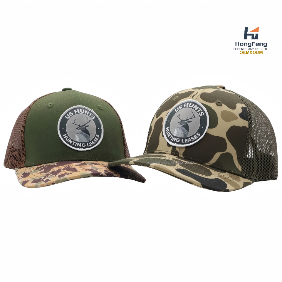 Gorras Trucker Richardson 112 con Parche de Cuero Personalizado con Logotipo de Caza de Animales, Gorras de Malla con Cierre a Presión, Gorras Trucker con Camuflaje de Pato