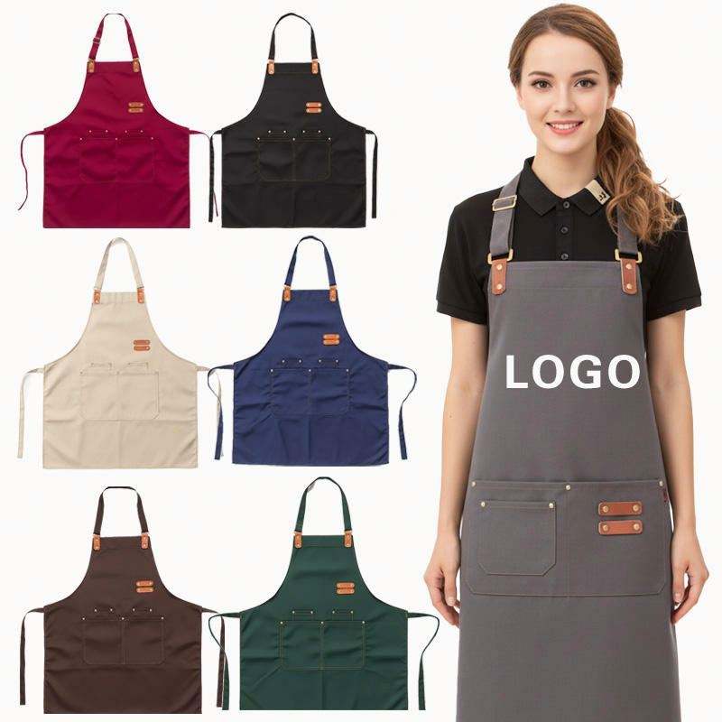 Delantal con Logotipo Personalizado para Chef, Delantal de Lona con Logotipo Impreso para Cocina, Restaurante, Cafetería, Delantal para Camarero