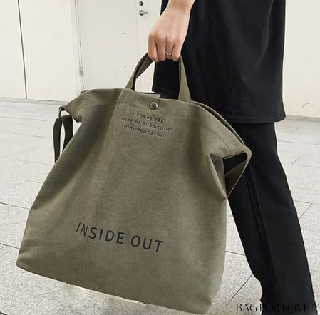 Bolso de compras de lona retro verde militar con logotipo personalizado de gran capacidad con correa para el hombro y hebilla cruzada diagonal