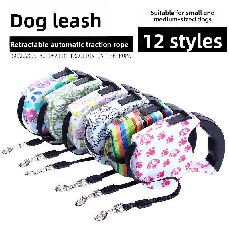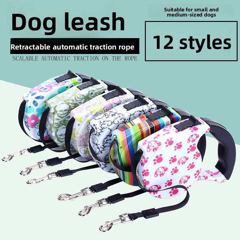 Correa Retráctil Automática de Lujo para Perros con Logotipo Personalizado, 5 Metros, 12 Diseños, Correa de Tracción Resistente y Antienredos para Perros Pequeños