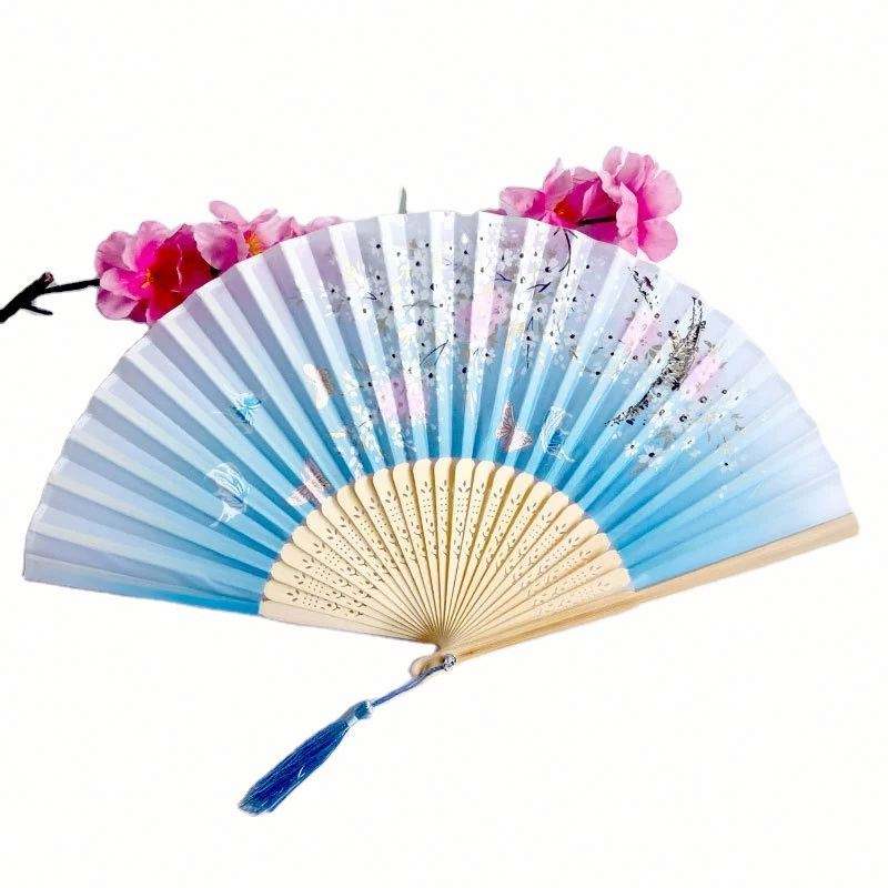 Abanico Plegable de Bambú con Logotipo Personalizado y Diseños con Motivos Románticos para Bodas, Fiestas, Regalos Empresariales y Ocasiones Navideñas
